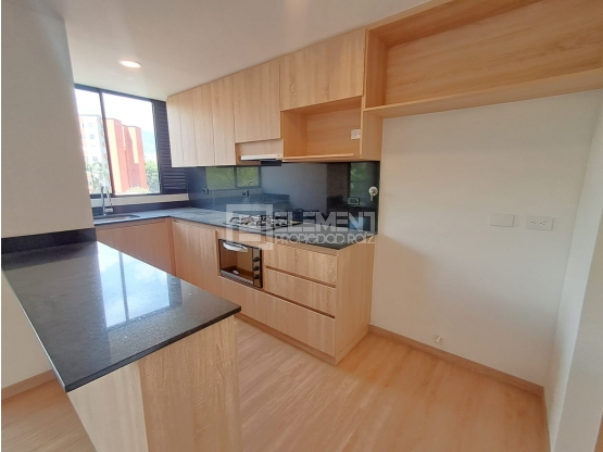 3 Alcobas, alcoba principal con baño cabinado y vestier, alcobas auxiliares con closet, sala - comedor, balcón en zona social con vista al exterior, baño social cabinado, cocina integral abierta con barra americana, horno, extractor y red de gas, zona de ropas independiente, pisos en cerámica y madera laminada, 2 parqueaderos cubiertos y cuarto útil.