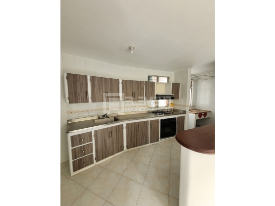 2 Alcobas con closet, alcoba principal con baño cabinado, baño social cabinado, sala-comedor, balcón, cocina Integral abierta con extractor, horno, red de gas, zona de ropas independiente, pisos en cerámica.