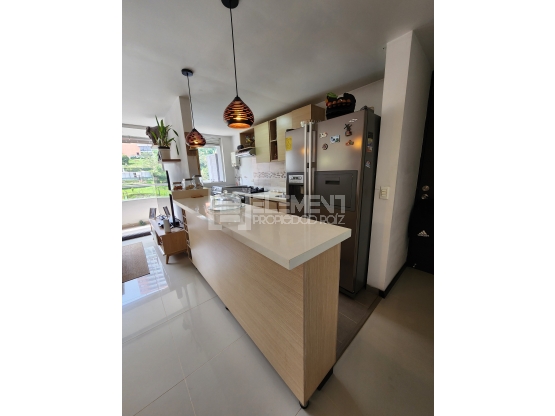 3 Alcobas con closet, alcoba principal con baño cabinado, baño social cabinado, sala - comedor, cocina Integral abierta con barra americana, horno, extractor, red de gas, balcón en zona social con vista a verde, zona de ropas, calentador de paso, pisos en porcelanato, parqueadero cubierto y cuarto útil.