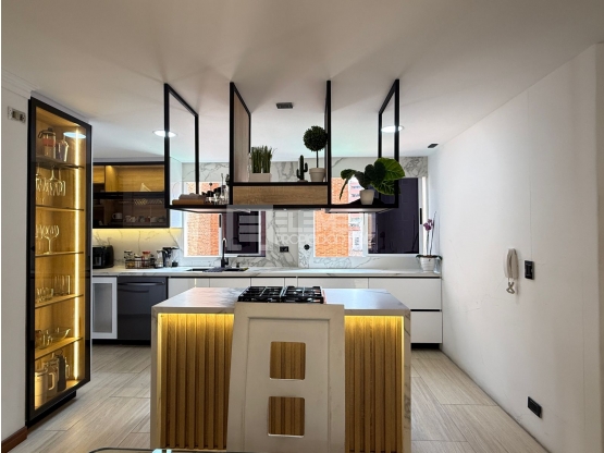 4 Alcobas, la alcoba principal con balcón, vestier y baño cabinado, alcobas auxiliares con closet y baño cabinado cada una, baño social, sala - comedor, estudio, balcón con vista al exterior, cocina integral abierta en isla, horno, extractor red de gas y lavaplatos eléctrico, 3 closet de linos, zona de ropas independiente, calentador de paso, pisos en marmol, parqueadero doble lineal cubierto, cuarto útil. 4to piso con ascensor.